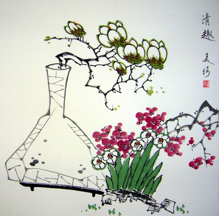 使用这些方法绘制出来的陶瓷作品极具中国画韵味。这些技法结合他们所要表现的物体可以细分成几种不同的笔法: