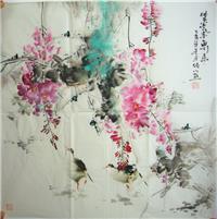 • 产品简介: 四尺工笔花鸟画,齐鲁画家韩梅四尺斗方作品,已装裱。