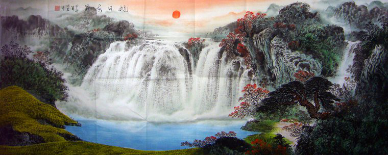 第一字画网的小八尺山水画,是幅适合办公室挂的字画,同样可以挂在家里的客厅等场合、彰显气势和品位,裱完后尺寸近2.8米左右,是一副大气磅礴的小八尺山水作品,作品雄浑苍劲,清新秀雅,布局合理,瀑布代表着源远流长,后方的红日寓意着鸿运当头,作品画功十分细腻,如果放在画廊出售,咏茗老师此幅小八尺山水佳作的在4800元左右。