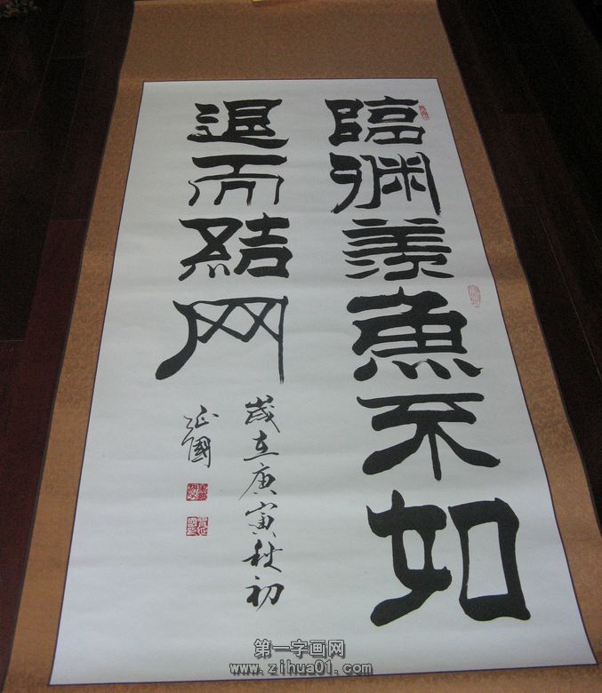 • 产品简介: 书法临渊羡鱼不如退而结网,四尺隶书作品,已装裱成轴。