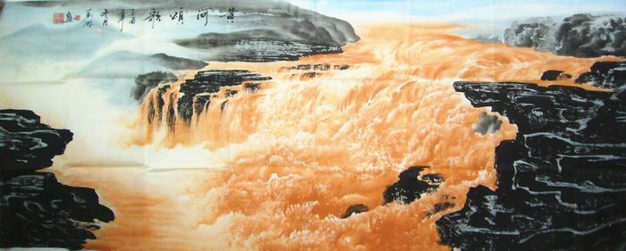 • 产品简介: 写意重彩国画黄河画,九曲黄河万里沙 浪淘风簸自天涯刘淋老师小六尺山水佳作。