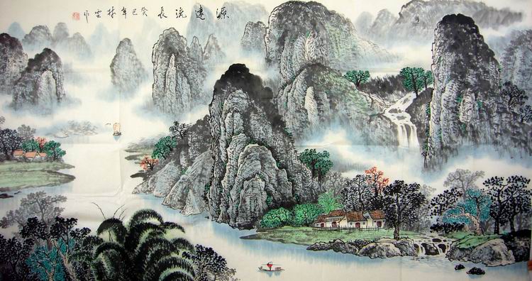 第一字画网的国画桂林山水画,这是一副大气磅礴的六尺山水作品,作品山水交汇、意境深动,是林老师在桂林漓江写生创作完成的山水作品,适合挂在家里的客厅、或是挂在公司的会议室,如果放在画廊出售,林云老师此副国画桂林山水画装的标价在2000元左右。