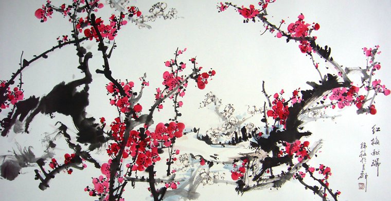 红梅国画作品