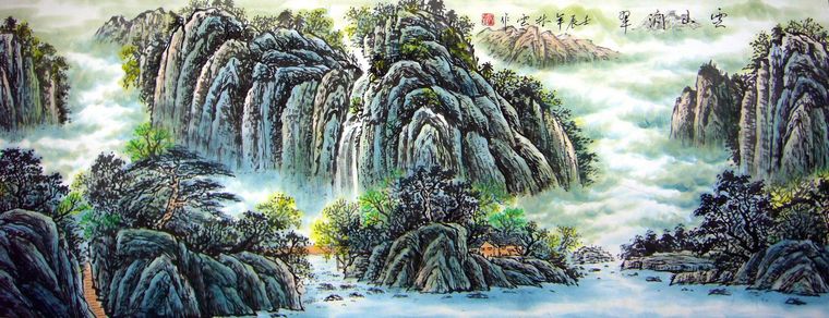 第一字画网的六尺写意国画山水,这是一副大气磅礴的小六尺山水作品,作品山水交汇、意境深动,适合挂在家里的客厅、或是挂在公司的会议室,作品的构图十分清新,是副颇有气势的写意山水画,如果放在画廊出售,林云老师此幅小六尺写意国画山水装裱完后的标价在2000元左右。