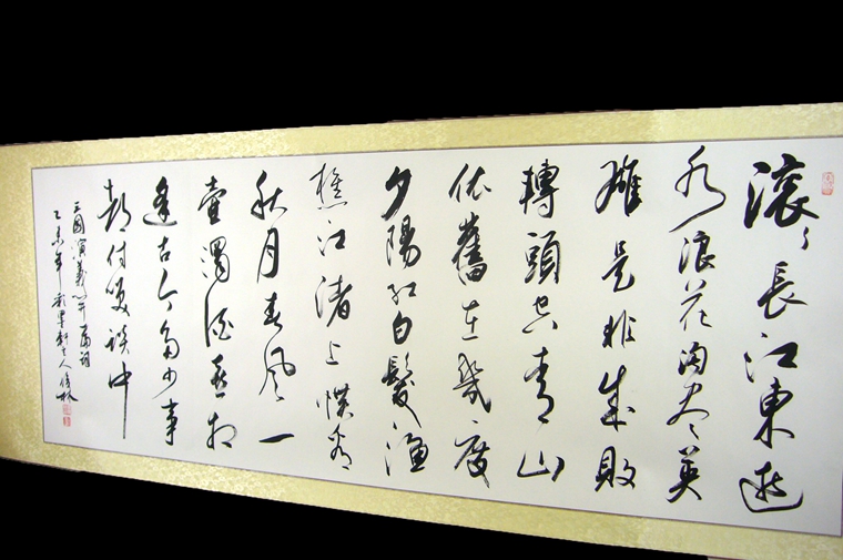 • 产品简介: 小六尺书法三国演义开篇词,装裱后长2.2米左右,已完成装裱。