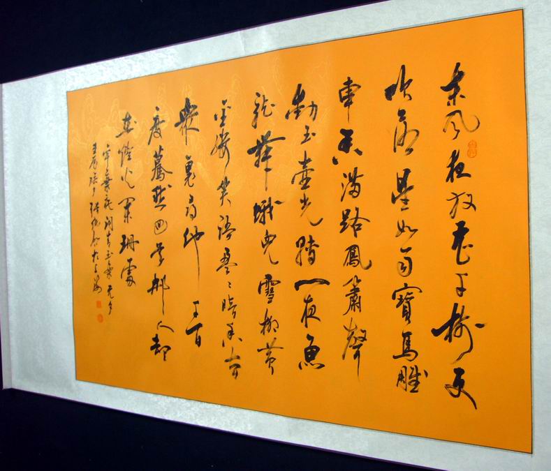 横幅字画作品装裱成裱杆的效果