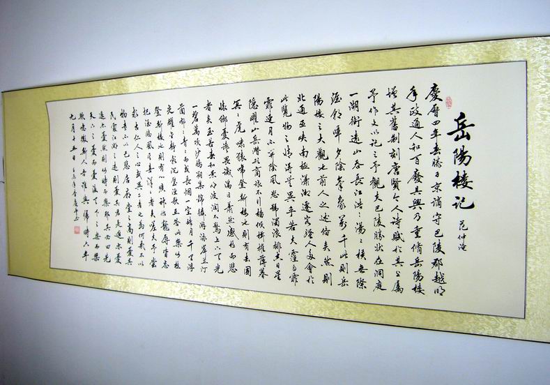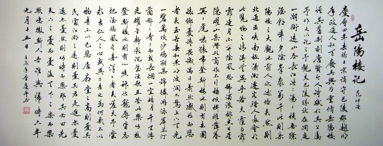 • 产品简介: 六尺书法岳阳楼记,湖北书协李庆丰老师作品,已装裱。
