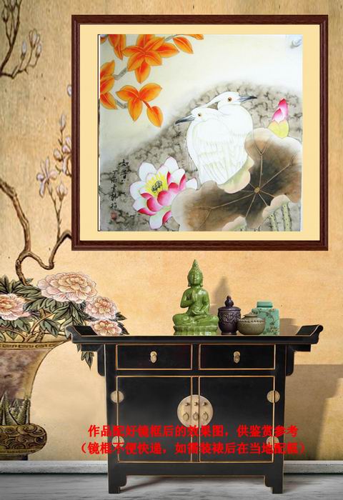 第一字画网的三尺斗方花鸟图 ,作品适合挂在餐厅,也可以挂书房、卧室或是玄关过道处,是一幅很有意境的荷花白鹭画作品。三尺斗方的荷花图并不多见,画的精彩的就更少了,这幅作品从构图和层次等细节处都可以看出是一幅用心精彩之作,寓意和气生财,如果放在画廊出售,韩梅老师此幅斗方白鹭花鸟图的价格大约在1500元左右。