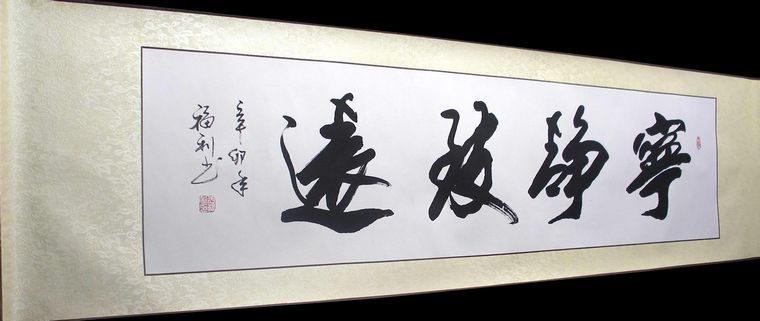 第一字画网的宁静致远对开书法,是副适合挂办公室或客厅的书法作品,这幅作品装裱后尺寸达1.8米,笔法老练,如果放在画廊出售,山东书协名家福利老师此副宁静致远对开书法装裱后的标价在900元左右。
