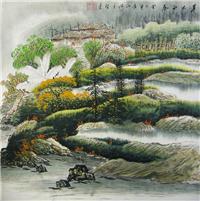 第一字画网的四尺斗方写意山水画,作品裱完后尺寸在0.8米见方左右,通过写实的勾画风格,将一派山水人家的景象呈现在了画面中,尺寸虽小,但画面却很精致,是林云老师的斗方作品。如果放在画廊出售,林云老师此幅四尺斗方写意山水画裱完后的标价在1000元左右。