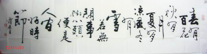 • 产品简介: 适合挂客厅的书法作品,春有百花秋有月,夏有凉风冬有雪,若无闲事挂心头,便是人间好时节。