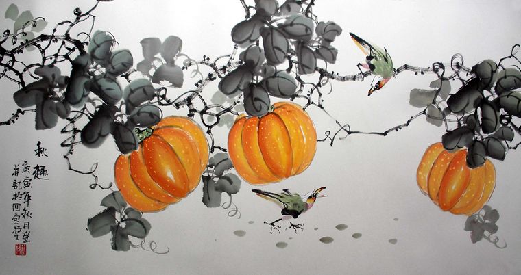 • 产品简介: 国画南瓜,三尺花鸟作品,已装裱,
