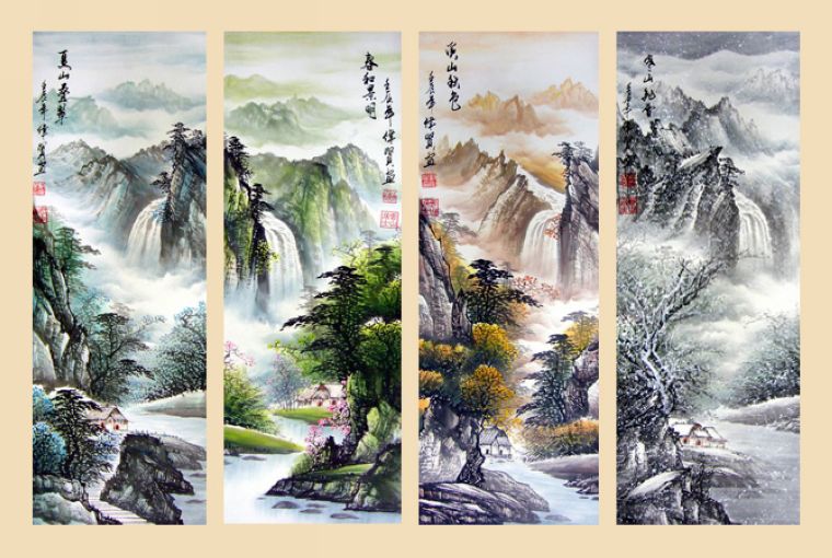 第一字画网的山水画四条屏,这套春夏秋冬风格的四条屏山水作品,适合挂在会客室、客厅等各类场合,或用作送礼,是一套水准上佳的山水画套画,共四幅组成,已经完成装裱,可以直接悬挂。作品布局优雅、画工细腻,是山水画家伟贤老师的用心之作,如果放在画廊出售,伟贤老师此套山水画四条屏的标价在5000元左右。