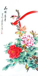 第一字画网的水墨画花鸟,这幅四尺花鸟作品非常适合挂在家里的餐厅或客厅,装裱后尺寸达到1.8米长,作品细腻生动、栩栩如生,如果放在画廊出售,王美琦老师此幅水墨画花鸟的标价起码在1200元左右。