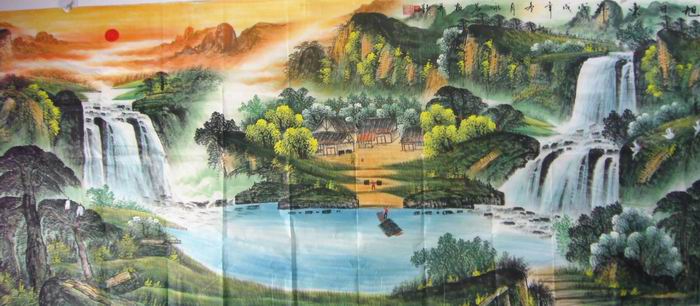 第一字画网的风水写意山水画,是一副大气磅礴的作品,彩墨交融,墨色清雅,是王咏茗老师的用心作品。小八尺大写意山水裱完后尺寸达到3米左右,如果放在画廊出售,王咏茗此副大写意山水的标价在7000元左右。这幅作品适合挂在家里的客厅、或公司的办公室、会议室等场合,作品布局合理、意境深动。