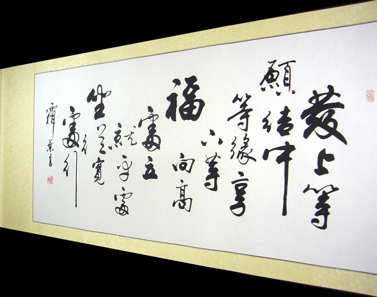 竖幅字画作品装裱成轴的效果(方便直接悬挂)