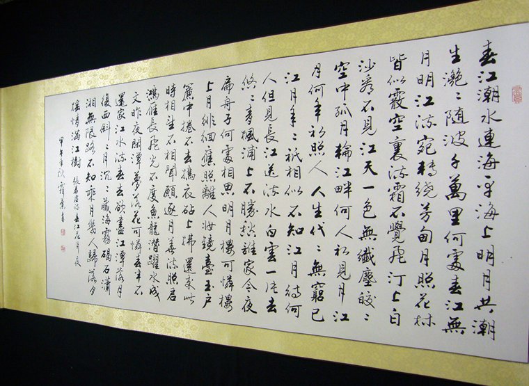 • 产品简介: 春江花月夜书法,老书法家李正枢老师四尺佳作,已装裱成卷轴。