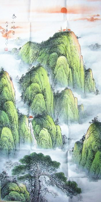 第一字画网的竖幅国画泰山,这幅四尺的泰山日出画尺寸近1.8米左右,是一幅大气磅礴的四尺山水作品,作品雄浑苍劲,清新秀雅,布局合理、气势磅礴,这幅山水美景视觉效果上佳。如果放在画廊出售,刘淋老师此幅竖幅国画泰山的标价在3000元左右。