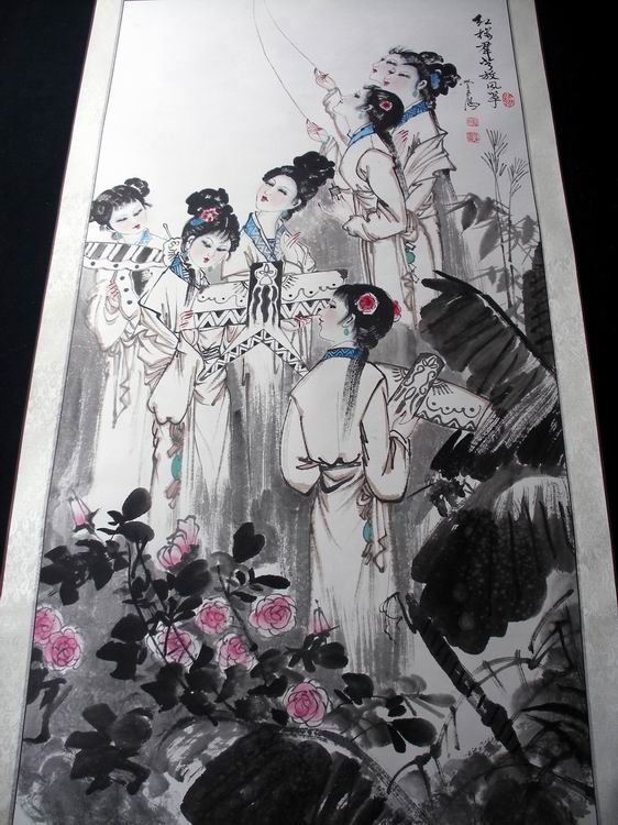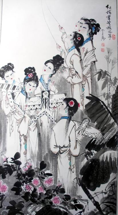 • 产品简介: 红楼放纸鸢图,画家刘学多老师四尺作品,已装裱。