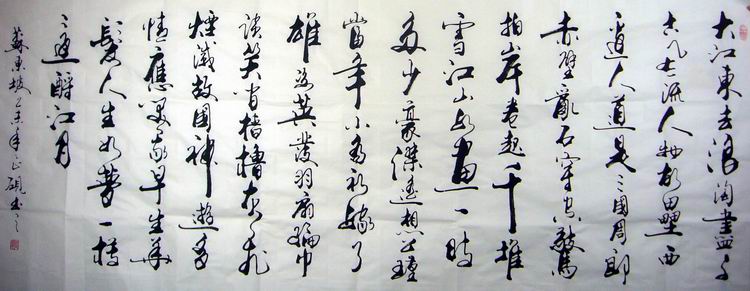 第一字画网的小八尺书法赤壁怀古,适合挂在家里的客厅,或公司会客室等场合,这幅小八尺书法赤壁怀古装裱后长度约在2.8米左右,作品笔法老练,如果放在画廊出售,广西书法家甘正砚老师此幅小八尺书法赤壁怀古的标价大约在3000元左右。