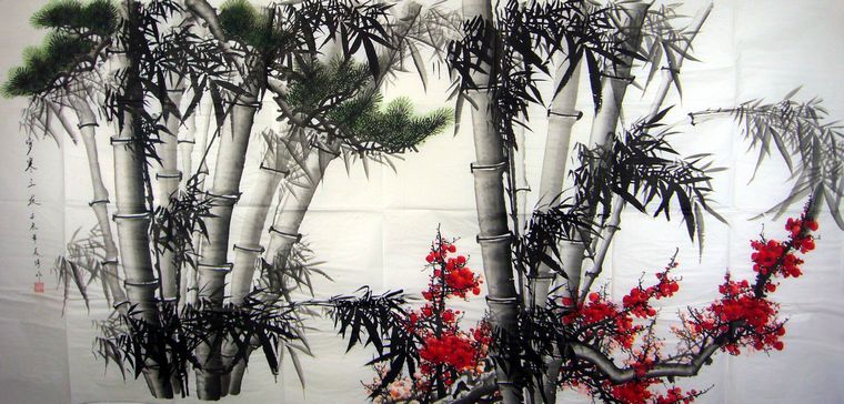 八尺国画岁寒三友