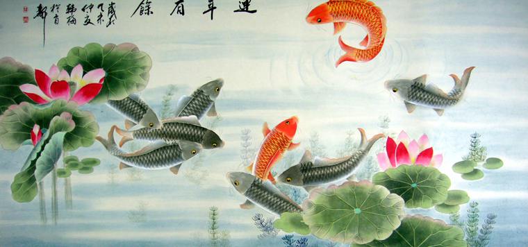 第一字画网的九鱼荷花图,这幅四尺的工笔画九鱼荷花装裱后长1.8米左右,是一幅非常有灵气的作品,九鱼图寓意长长久久、连年有余,作品挂在家里餐厅或客厅都是不错的选择,作品的画功十分细腻,水准出色,如果放在画廊出售,韩梅老师此幅九鱼荷花图的标价在2500元左右。