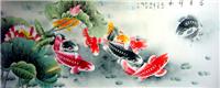 • 产品简介: 九鱼荷花图,齐鲁画家韩梅四尺工笔画作品,已装裱。