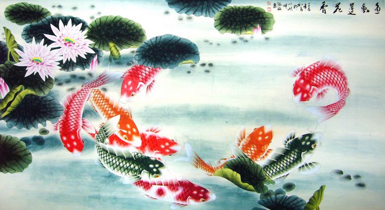 • 产品简介: 六尺工笔九鱼作品,齐鲁画家韩梅大六尺九鱼图佳作,已装裱。