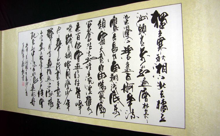 竖幅字画作品装裱成轴的效果(方便直接悬挂)