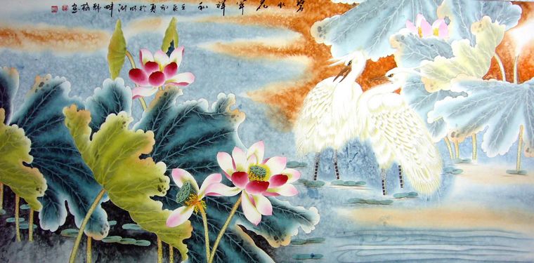 第一字画网的国画白鹭图,四尺工笔白鹭图裱完后长度约1.8米左右,是一幅十分精致的工笔作品,格调清新,画功细腻,作品别开生面、雅俗共赏。如果放在画廊出售,画家韩梅老师此幅国画白鹭图的标价在2500元左右。