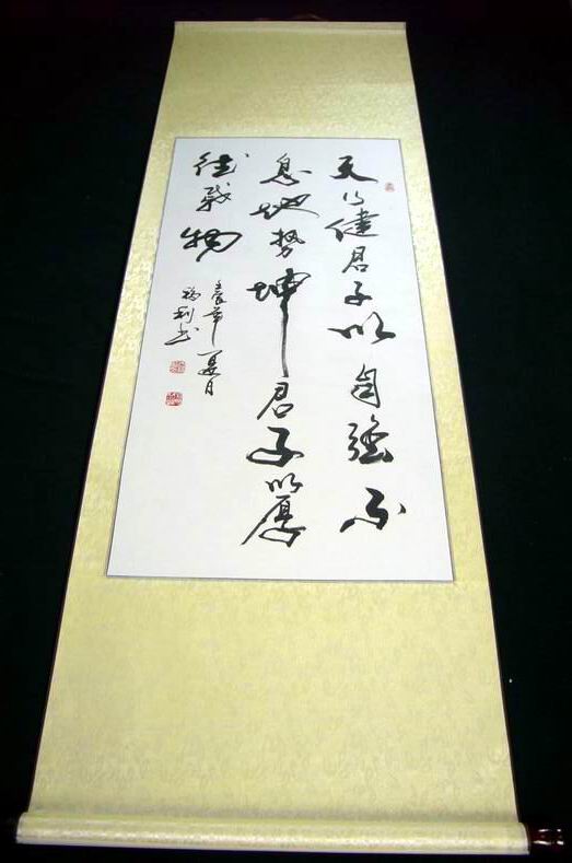 竖幅字画作品装裱成轴的效果(方便直接悬挂)