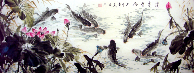 • 产品简介: 六尺国画九鱼图,美琦老师小六尺作品。