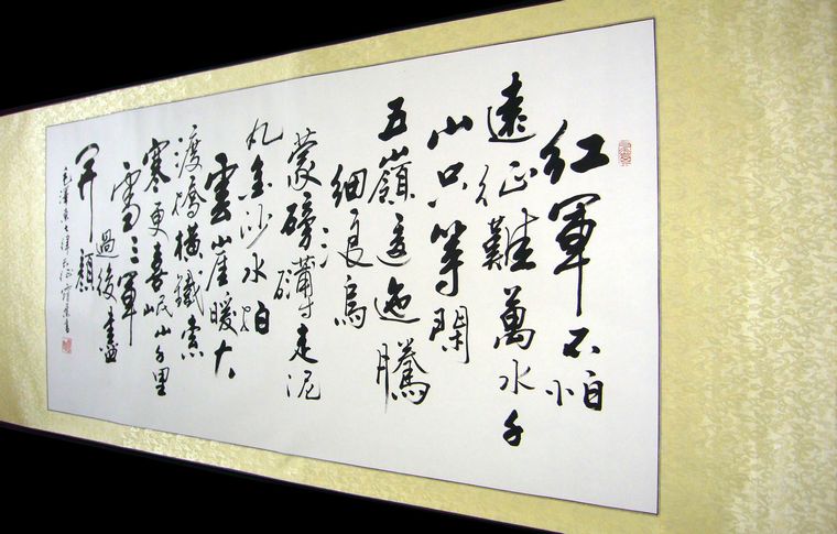 横幅字画作品装裱成裱杆的效果