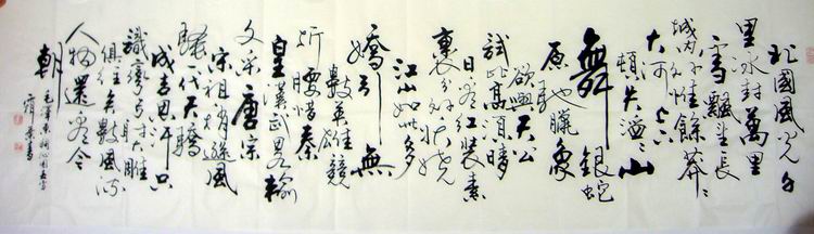 • 产品简介: 横幅书法沁园春雪,老书法家李正枢老师六尺对开作品,已装裱。