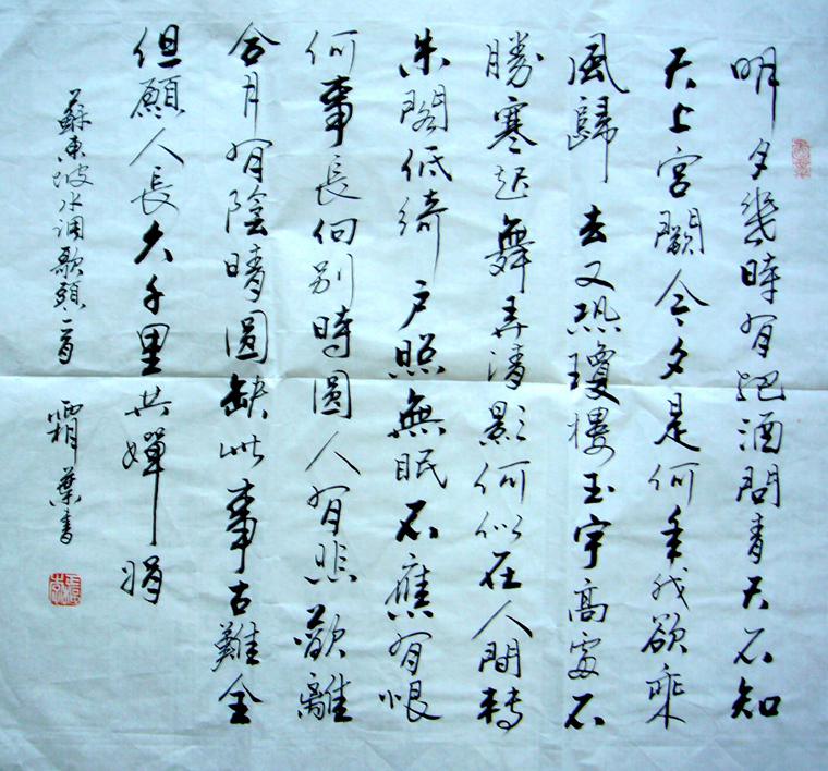 斗方书法水调歌头