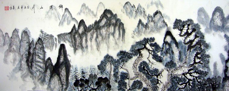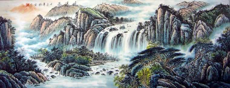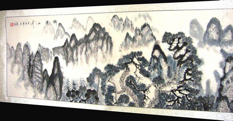 第一字画网的中国水墨山水画,是幅挂在家里的客厅,或是公司的大型会议室。六尺山水画裱完后长度达2.2米左右,是一副大气磅礴的山水作品,作品意境生动、山水交汇,是副风水极佳的山水大作。如果放在画廊出售,新鸣老师此幅六尺横幅山水画的标价在2500元左右。作品功力深厚,构图气势磅礴,风水布局效果极佳.
