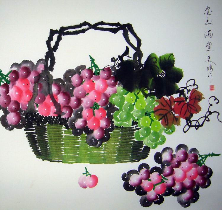 第一字画网四尺斗方葡萄,是副适合餐厅或玄关过道挂的花鸟画,寓意硕果累累。这幅小斗方葡萄装裱后尺寸在0.8米见方,水墨的葡萄作品细腻生动、栩栩如生。如果放在画廊出售,王美琦老师此副四尺小斗方葡萄装裱后的标价大约在800元左右。