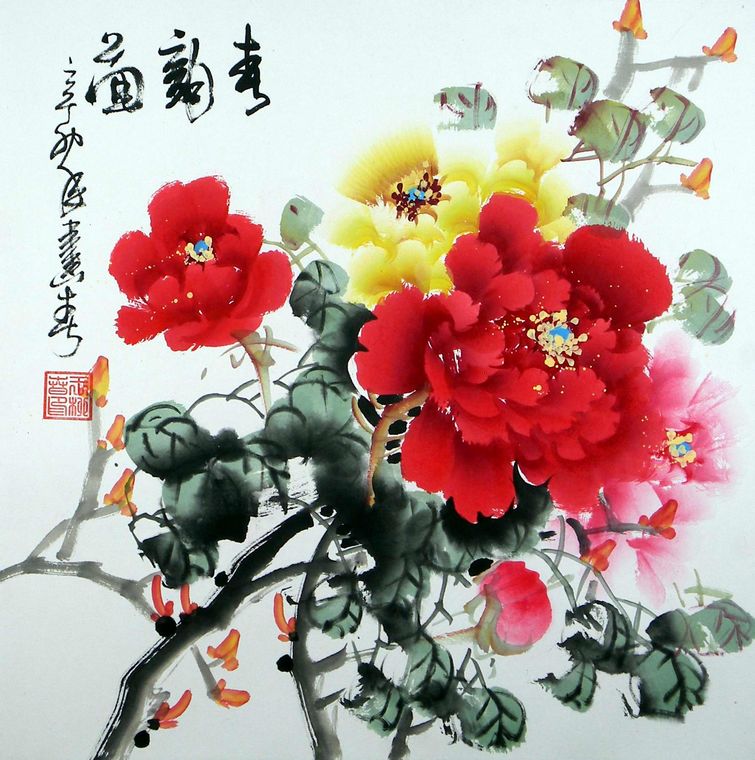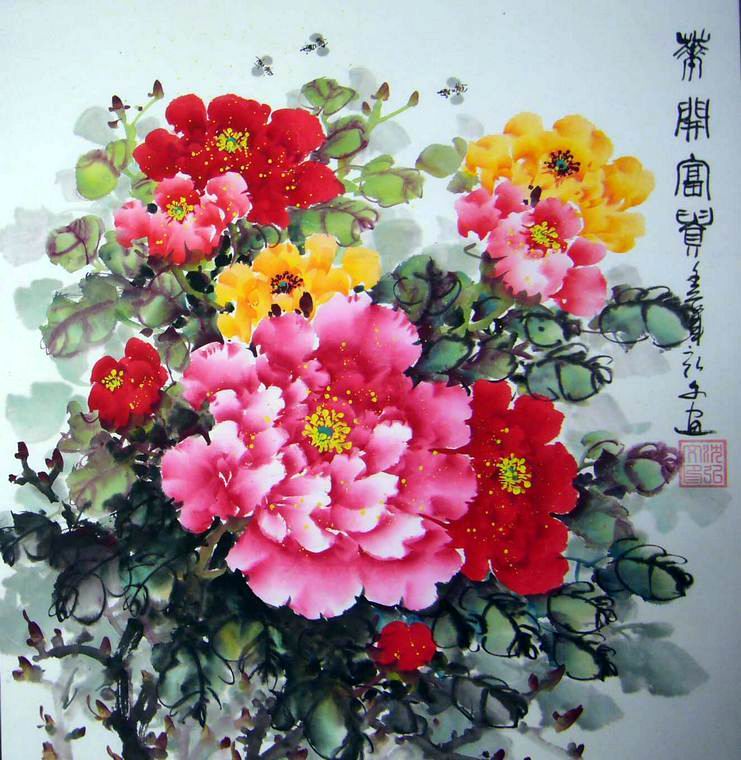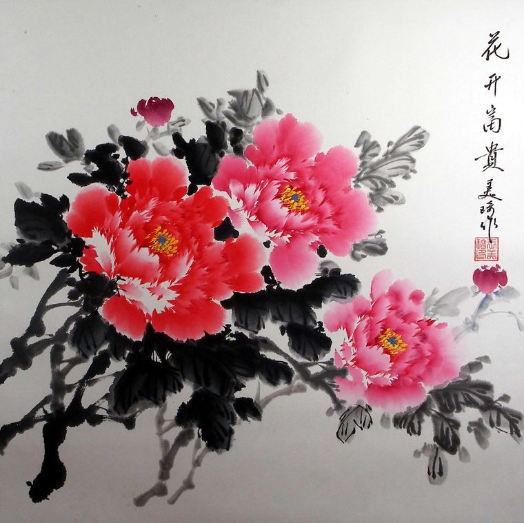 1)三尺见方国画牡丹