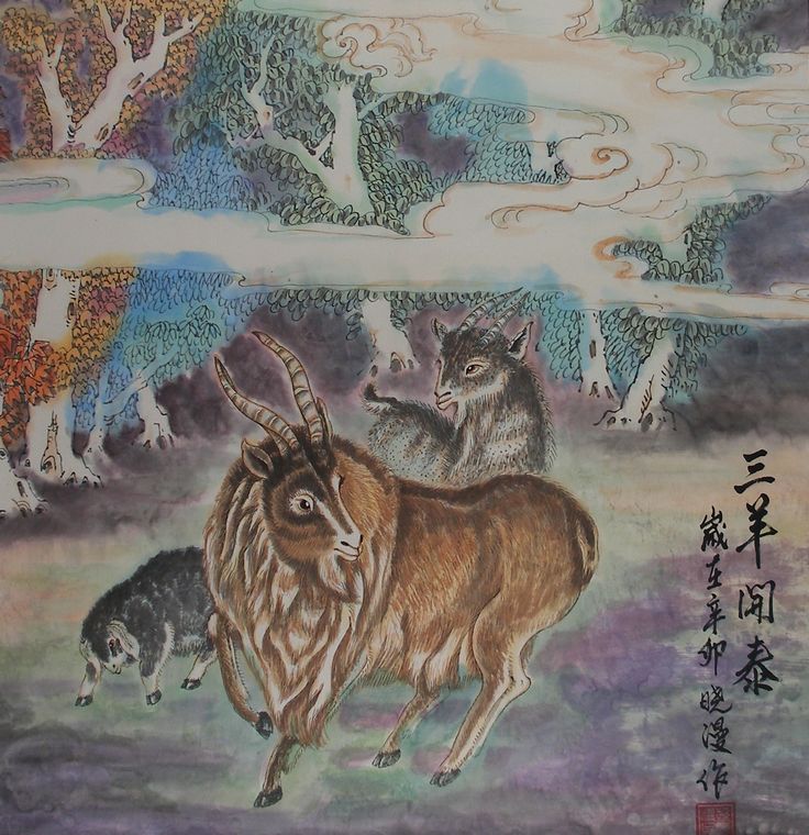 • 产品简介: 孙晓漫三羊开泰图,已装裱
