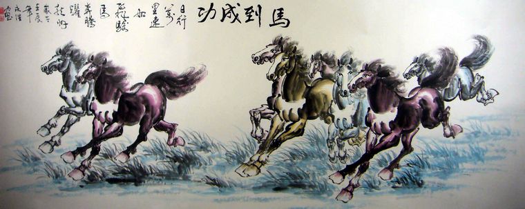 第一字画网的八尺八骏图,小八尺作品整体气势磅礴,尽显马之神韵,裱完后的长度达到3米左右,这幅八骏图国画挂在家里的客厅或是公司的办公室都是非常气派,送人也是很不错的选择。如果放在画廊出售,永浩老师此副八骏图国画的标价起码在2500元左右。