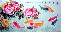 工笔画牡丹九鱼