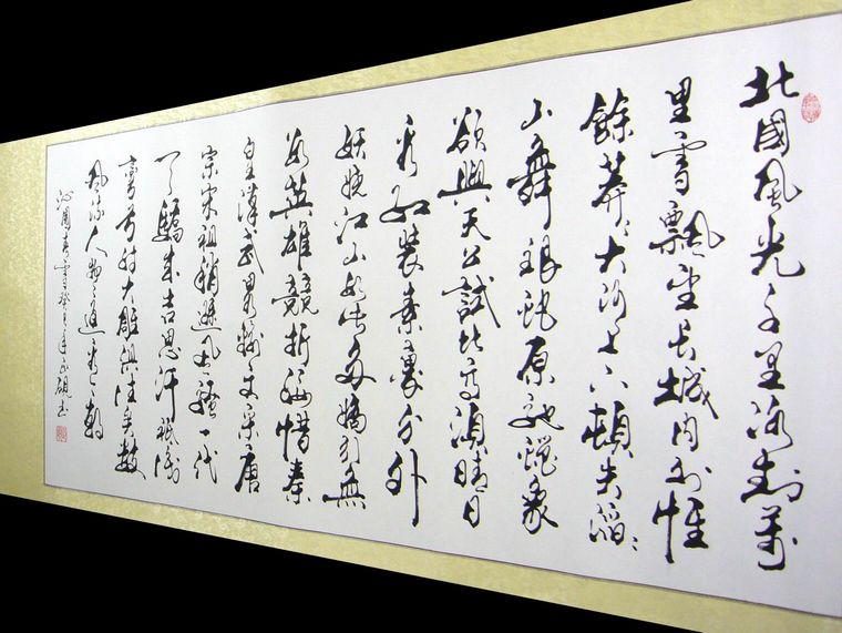 • 产品简介: 广西书法家甘正砚老师沁园春雪书法,已装裱。