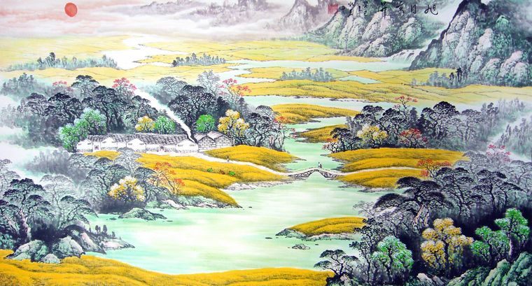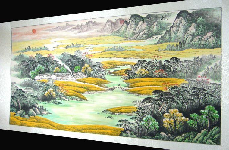 第一字画网的客厅山水风水,咏茗老师这幅六尺作品适合挂办公室、或家里的客厅、彰显气势和品位,裱完后尺寸近2.2米左右,作品雄浑苍劲,清新秀雅,布局合理,瀑布代表着源远流长,后方的红日寓意着鸿运当头,是一派丰收的景象,这幅山水美景视觉效果上佳。如果放在画廊出售,咏茗老师此幅客厅进门山水画的价格在4000元左右。