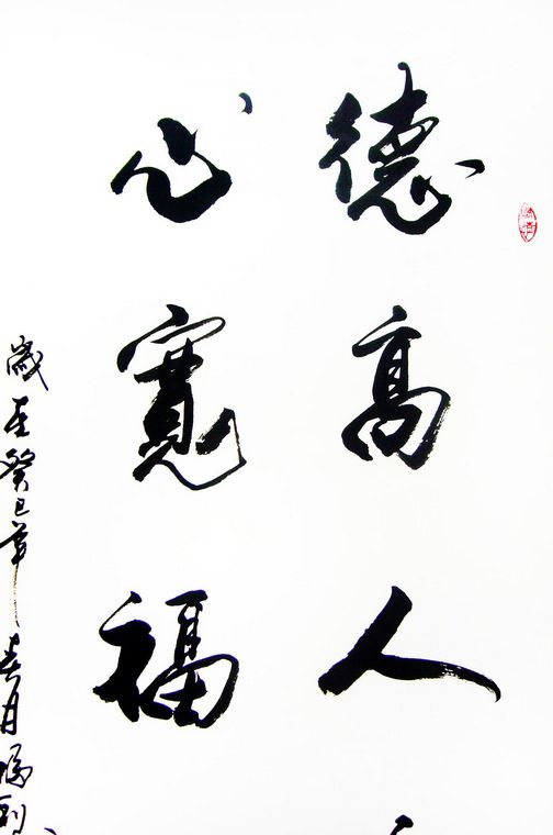 第一字画网送长辈礼物,是副适合挂办公室或客厅的书法作品,非常适合送老人家的作品,这幅作品装裱后尺寸达1.8,笔法老练,如果放在画廊出售,山东书协名家福利老师此副作品的标价在1000元左右。