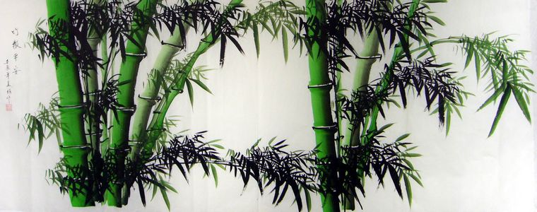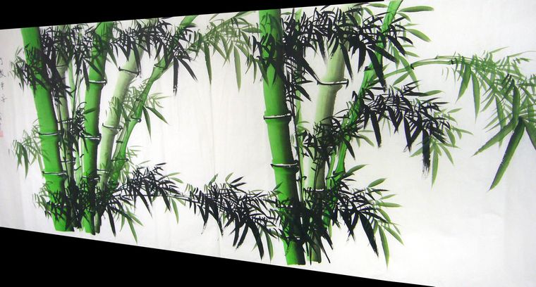 第一字画网的国画竹子图,这幅小八尺的彩竹图非常适合挂在大型的会议室,或是酒店的大厅等场合,画芯的尺寸就达到了2.4米长,作品细腻生动、如果放在画廊出售,美琦老师巨幅八尺国画竹子的标价在2500元左右。竹子长的亭亭玉立、节坚心虚,有君子之风,象征挺拔和坚强不屈,故人们将竹子以高洁品质而称颂,为一种吉祥象征物。竹心空虚,所以象征着谦虚的美德。竹子四季常青不变色,因此也用来形容老年人健康的象征。“竹”又与“祝”谐音,有美好祝福的习俗意蕴。