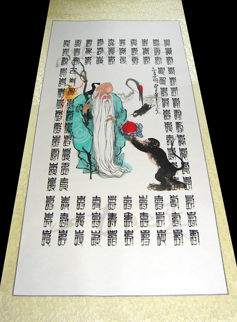 竖幅字画作品装裱成轴的效果(方便直接悬挂)
