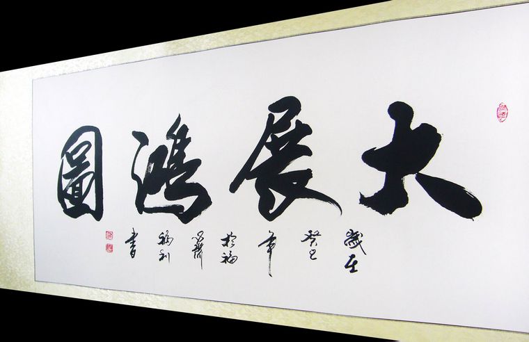 第一字画网新到的四尺书法佳作大展宏图书法作品,,适合挂在办公室或书房等场合。福利老师这幅作品装裱后尺寸达1.8米,笔法老练,如果放在画廊出售,山东书协名家福利老师此幅书法大展宏图装裱后的标价在1000元左右。