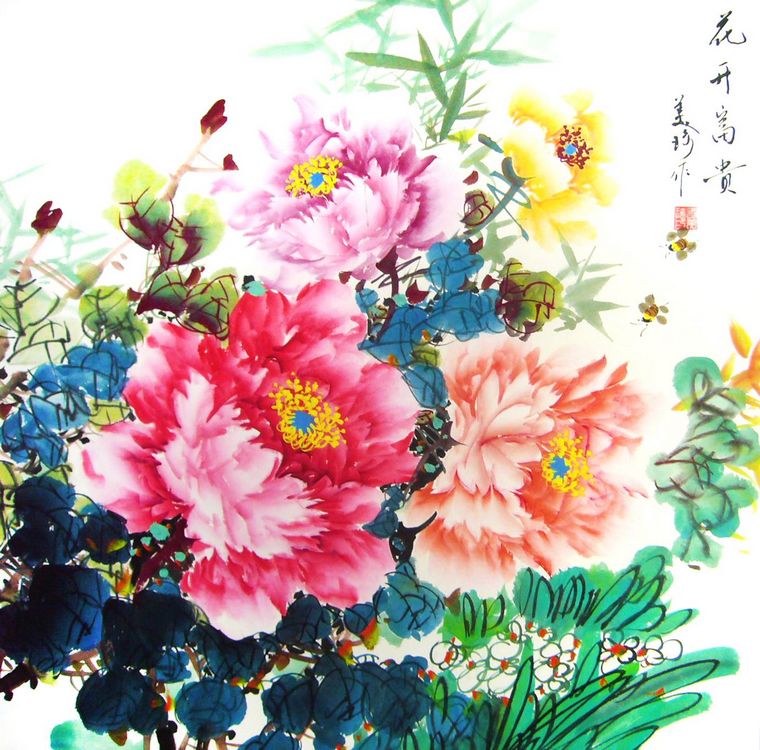 第一字画网的三尺斗方富贵牡丹图,这幅三尺斗方牡丹画裱完后尺寸近0.6米见方,是一副水准上佳的作品,作品画风细腻、栩栩如生,牡丹寓意着富贵吉祥,作品上又写着花开富贵四个字,挂在家里客厅是不错的选择,如果放在画廊出售,美琦老师此幅三尺斗方富贵牡丹图的标价在800元左右。