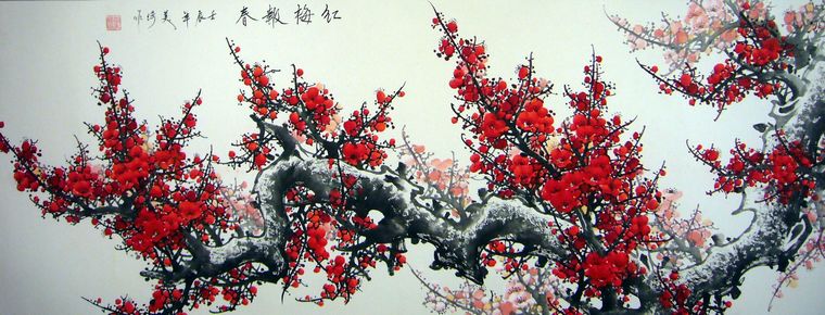 丈二红梅报春图