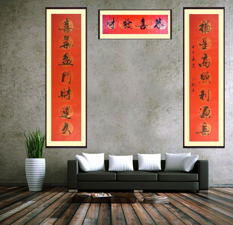 (装裱后尺寸约:长1.8*宽0.42米*2幅;横批约:1米*0.42米)